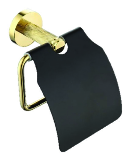 Description: Paper holder with a chromed gold and black finish.